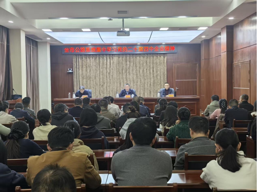 11月4日,市公路事业发展中心召开党的二十届四中全会精神学习会,会议传达学习党的二十届四中全会精神及全省、全市领导干部会议精神。中心党组书记、主任刘茨坪主持会议并做专题辅导。中心班子成员、各基层党(总)支部书记、中心机关全体干部职工参加会议。